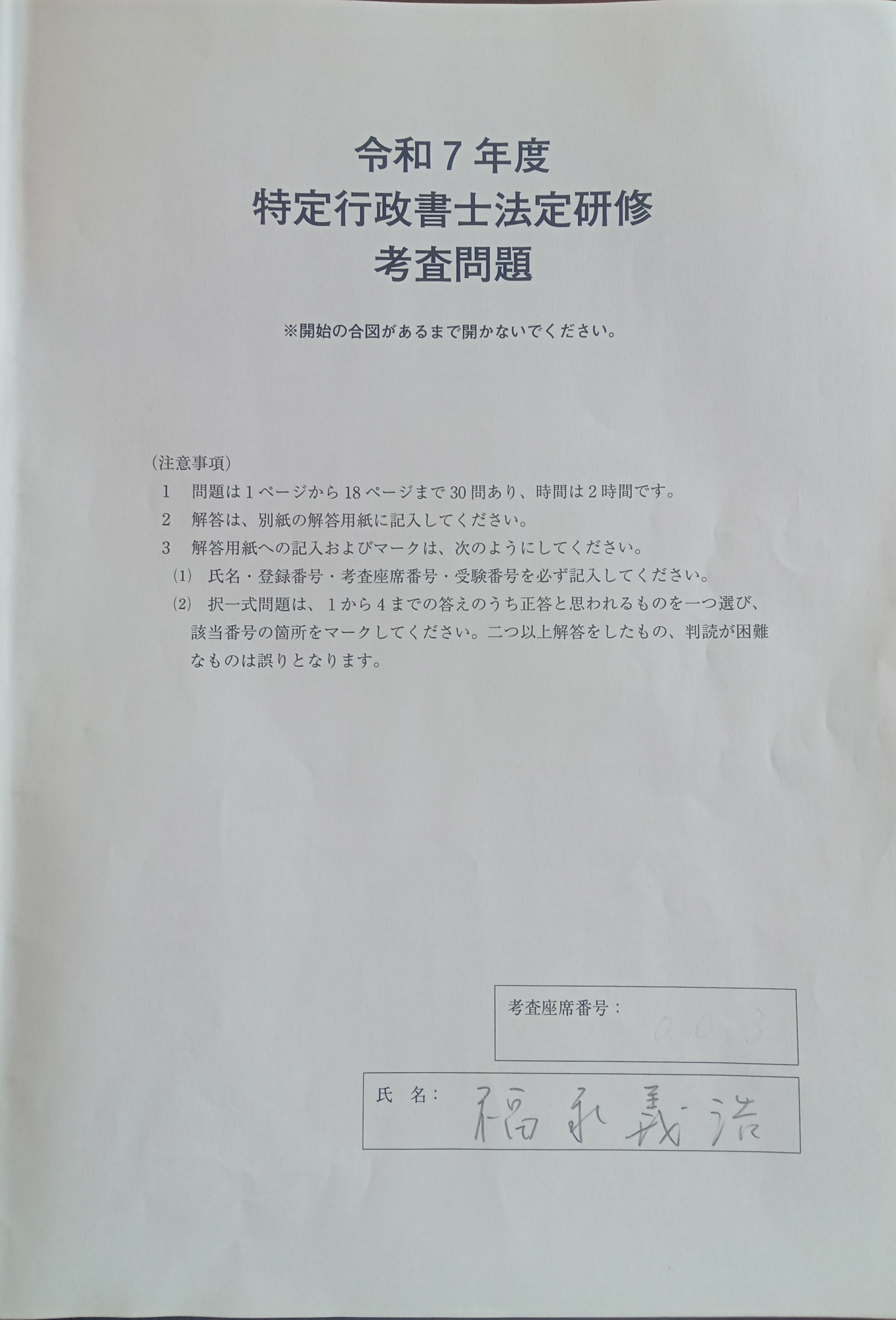 10月19日に鹿児島市にて令和7年度特定行政書士法定研修考査を受けてきました。 結果発表は11月14日あたりらしいです。 多分合格していると思うけど、結果を見るまでは心配ですね。 業務で扱うことは無いかもしれませんが、 業務の幅を広げるためにも審査請求(不服申立て)における訴訟的システムを 理解するうえでも役に立つものだと考えてます。 ちなみに、行政手続法の行政指導の問題は、行政書士本試験よりも かなり深堀した問題が出ます。 軽い気持ちで試験に挑むと足をすくわれること間違いなしです。